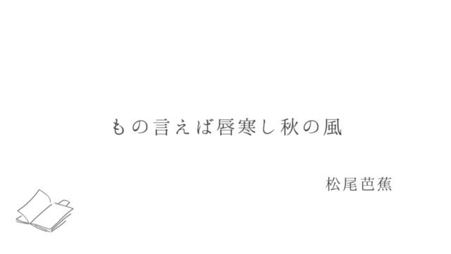日本文学 もの言えば唇寒し秋の風 意味(現代語訳) 2025年11月27日 キノ 文学の話。 もの言えば唇寒し秋の風 松尾芭蕉 〈原文〉 もの言えば唇寒し秋の風 〈現代語訳〉 秋風の吹く季節には、口を開くと、冷たい風が唇に触れ、寒々しい気分になる。 概 …